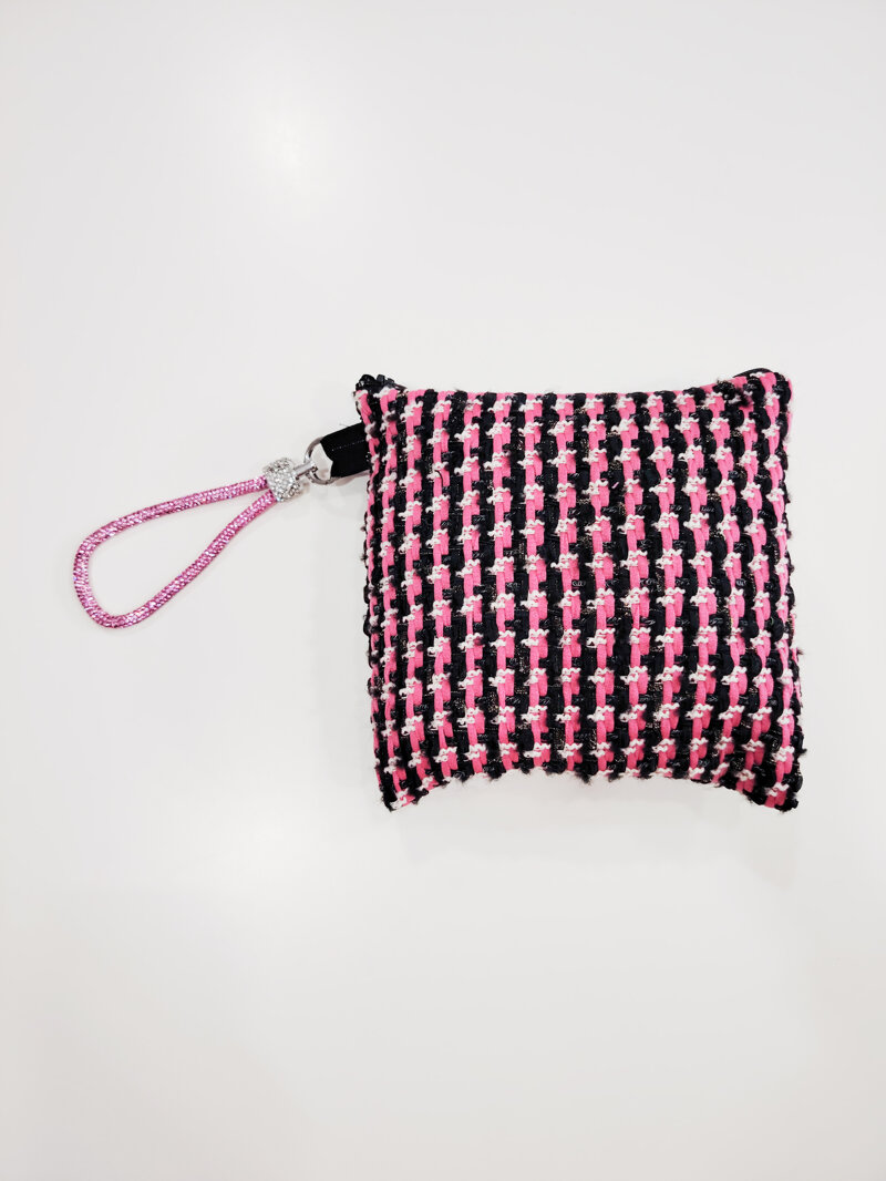 Pochette in tessuto con polsino in strass