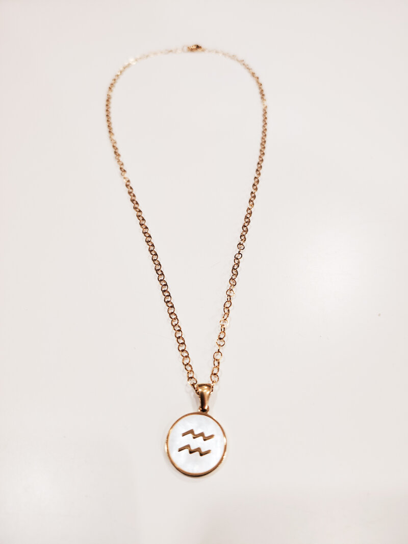 Collana in acciaio dorato con pendente zodiacale su base in madreperla