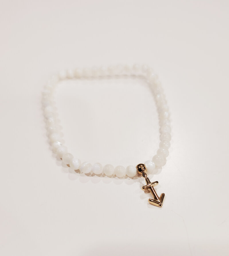 Braccialetto elasticizzato in madreperla con segno zodiacale in acciaio dorato