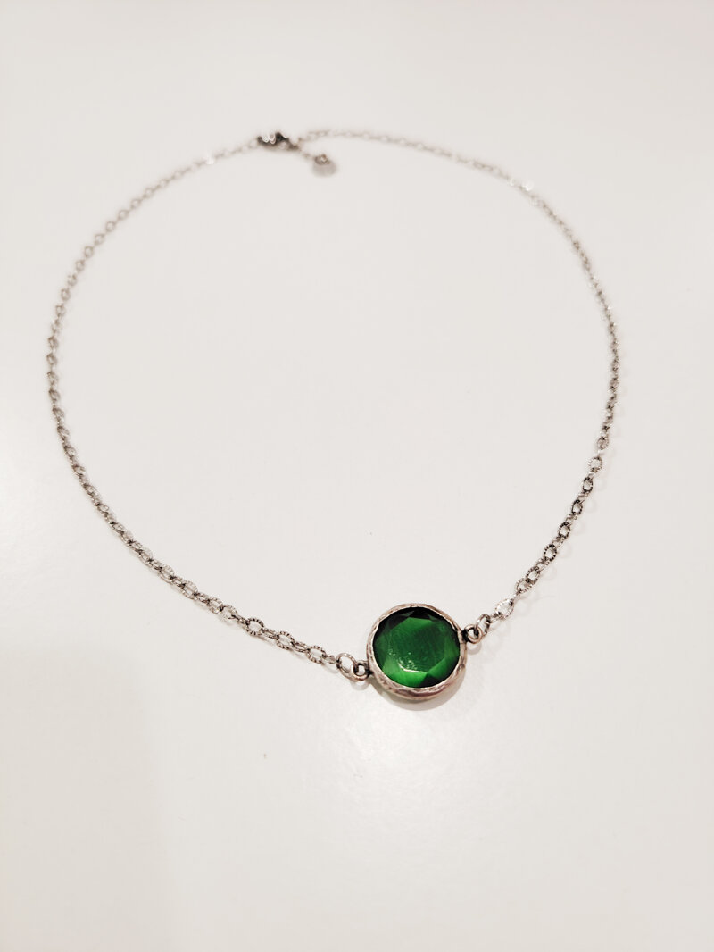 Collana girocollo in acciaio con pietra centrale di occhio di gatto, diametro 1,5 cm