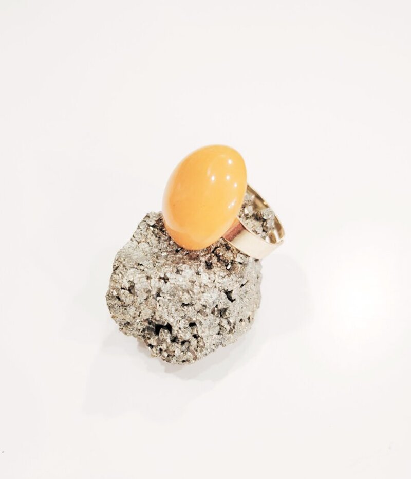 Anello in acciaio con pietra cabochon da 2 cm
