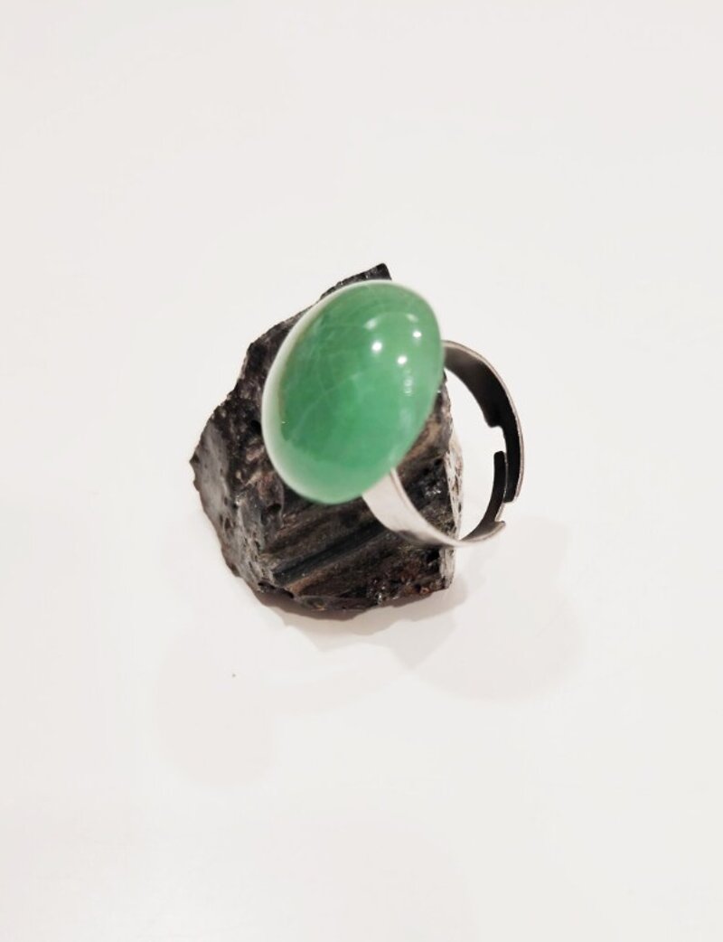 Anello in acciaio con pietra cabochon da 2 cm