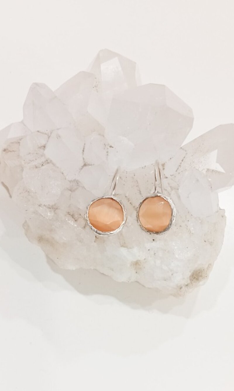 Orecchini in bronzo argentato con goccia di occhio di gatto, circa 1 cm